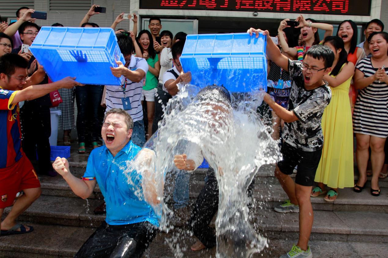 8月27日中午,驕陽似火,通力電子綜合樓門前廣場人頭攢動、人聲鼎沸,這里正在上演著的就是最近風(fēng)靡全球的冰桶挑戰(zhàn)。